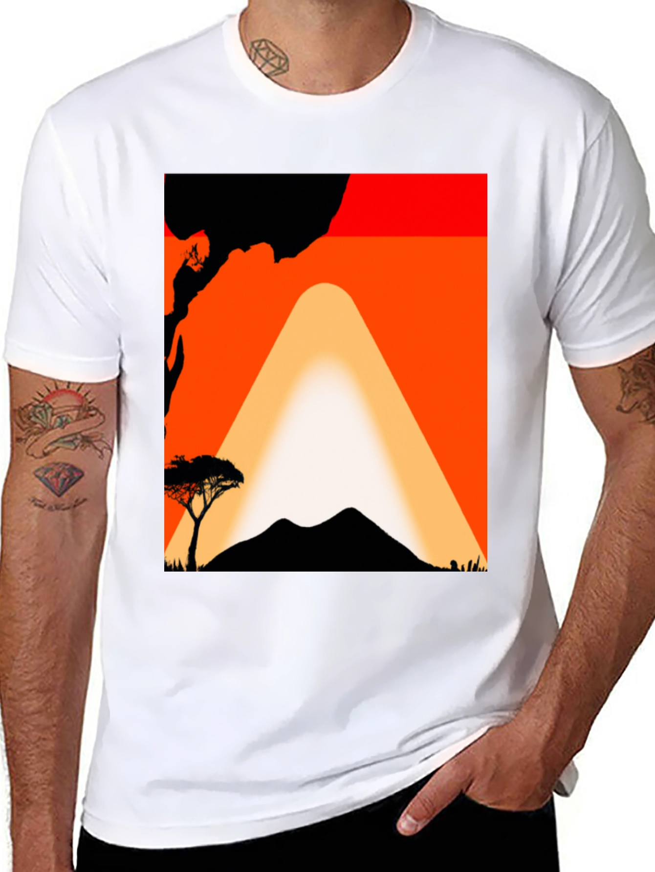 Esta llamativa camiseta negra presenta un impresionante diseño gráfico que evoca un atardecer africano. Siluetas negras de árboles y montañas se destacan sobre un fondo de degradado naranja y rojo, con un haz de luz blanco que ilumina la escena. El diseño captura la esencia de la sabana africana al caer la noche, brindando un estilo único y audaz. Fabricada con materiales de alta calidad, esta camiseta es perfecta para quienes buscan expresar su individualidad y aprecio por la naturaleza. Ideal para usar en salidas informales, eventos al aire libre o simplemente para destacar con un toque artístico. ¡Añade un toque salvaje a tu guardarropa con esta camiseta excepcional!