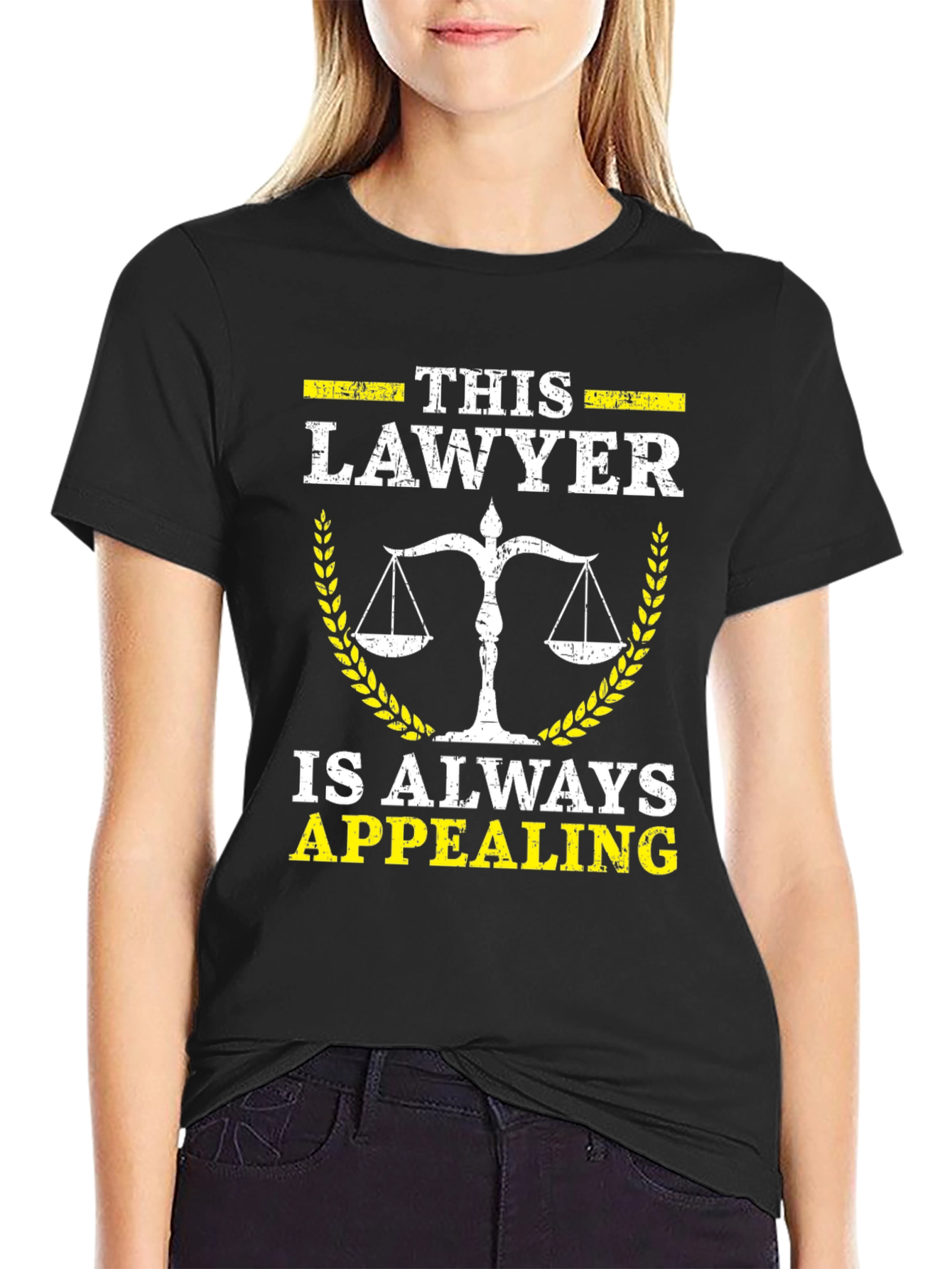 Luce con orgullo esta camiseta negra que presenta un diseño llamativo para los profesionales del derecho. Con la frase "THIS LAWYER IS ALWAYS APPEALING" (Este abogado siempre es atractivo) impresa en letras blancas y amarillas, la camiseta también incluye una imagen de las balanzas de la justicia rodeada de laureles dorados. Ideal para llevar en eventos informales, reuniones con amigos o simplemente para mostrar tu pasión por la abogacía. Confeccionada con materiales suaves y cómodos, esta camiseta es perfecta para el uso diario y seguro llamará la atención con su diseño único.
