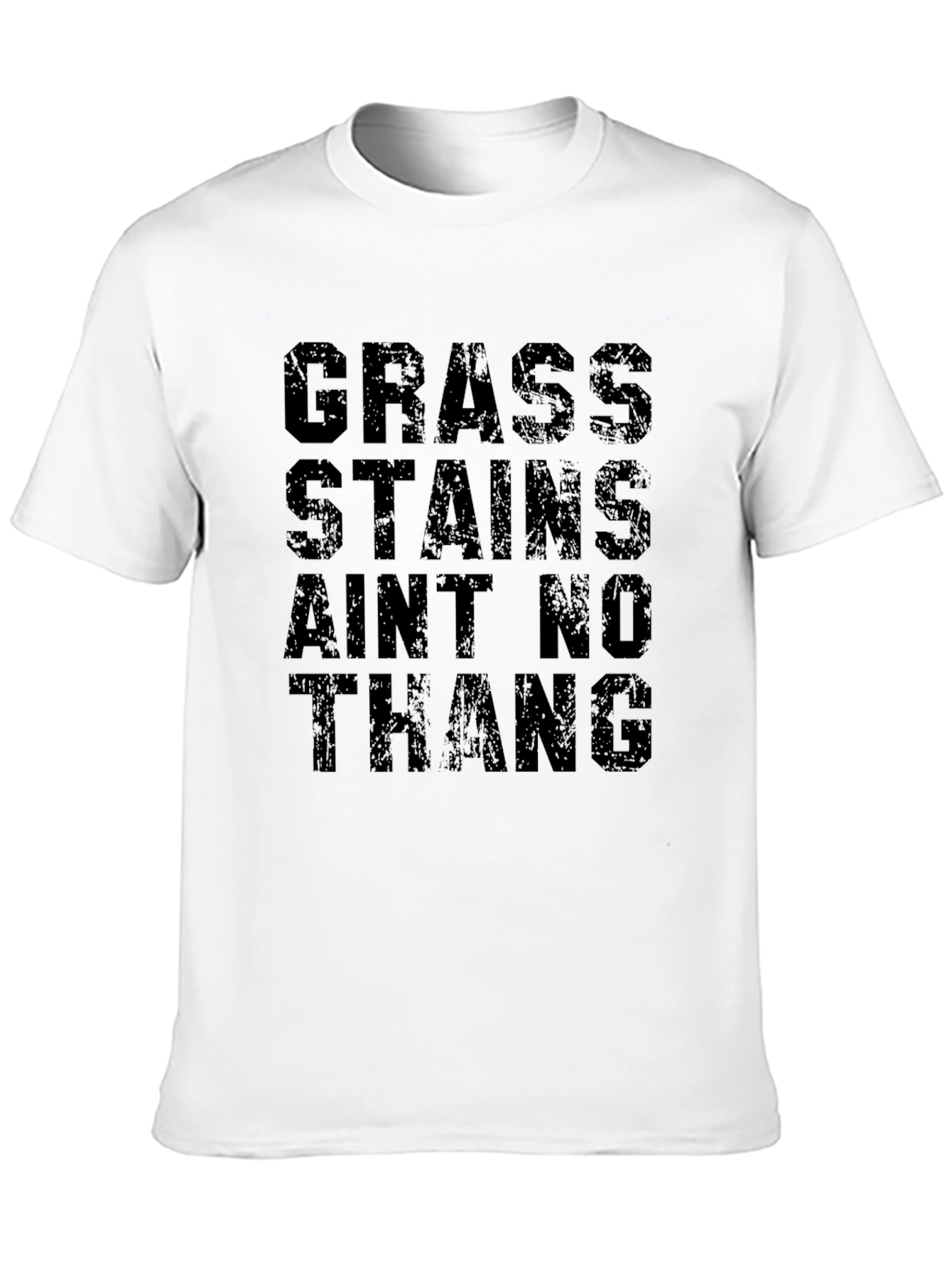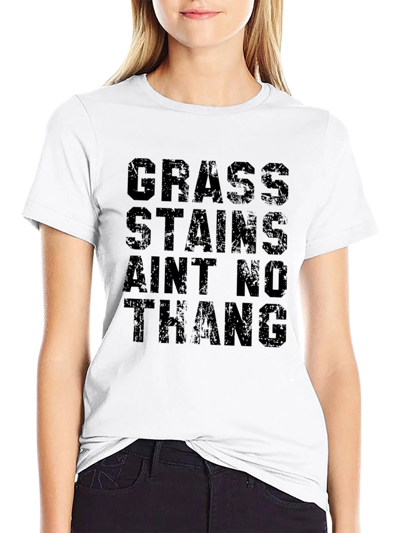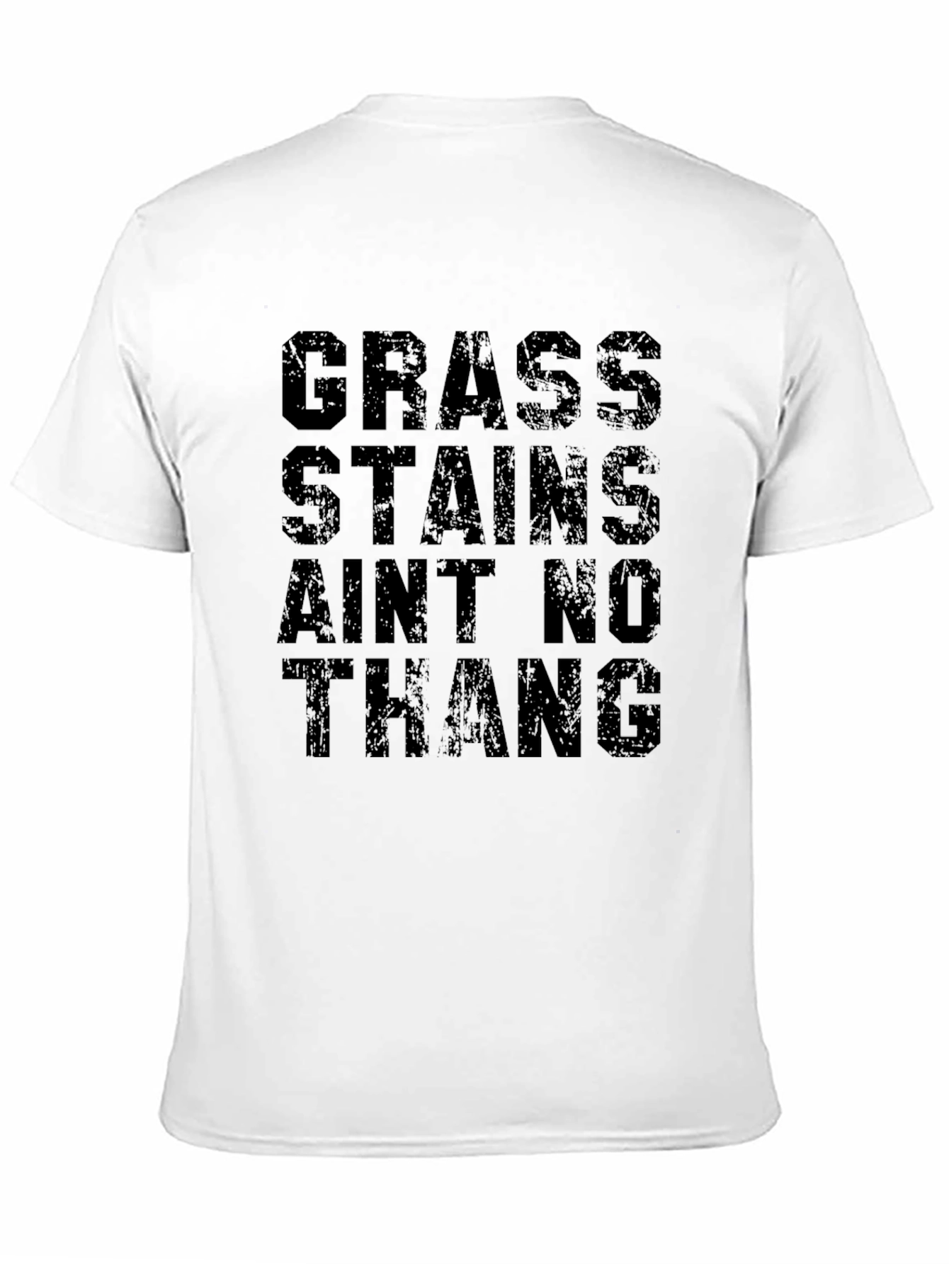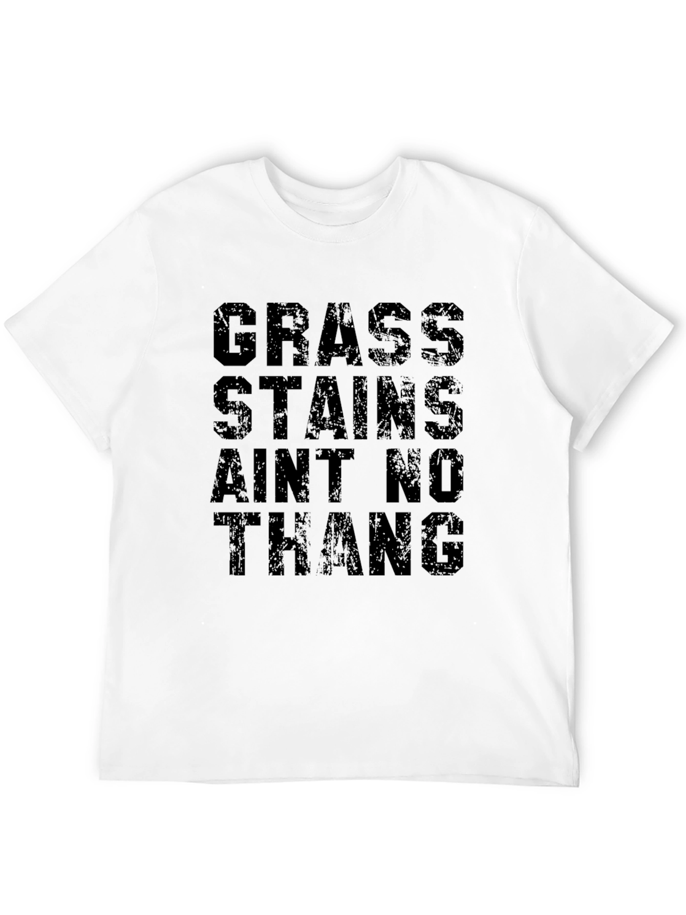 Esta camiseta negra presenta una declaración audaz y divertida: "GRASS STAINS AIN'T NO THANG". El diseño en letras grandes y ligeramente desgastadas le da un toque urbano y moderno. Fabricada aparentemente en algodón suave, esta camiseta de manga corta es perfecta para un estilo casual y cómodo. Ideal para aquellos que aman la naturaleza, los deportes al aire libre o simplemente no se preocupan por ensuciarse un poco. Combina bien con jeans, pantalones cortos o incluso una falda para un look relajado. Lleva esta camiseta con orgullo y muestra tu actitud despreocupada ante las pequeñas imperfecciones de la vida.