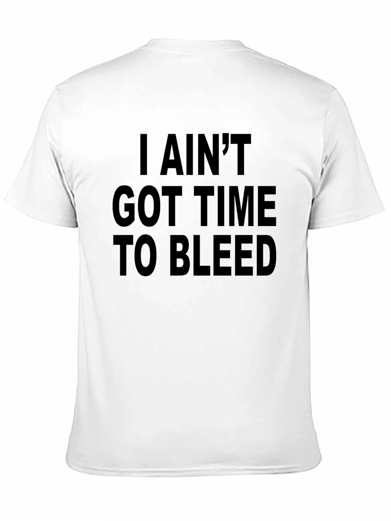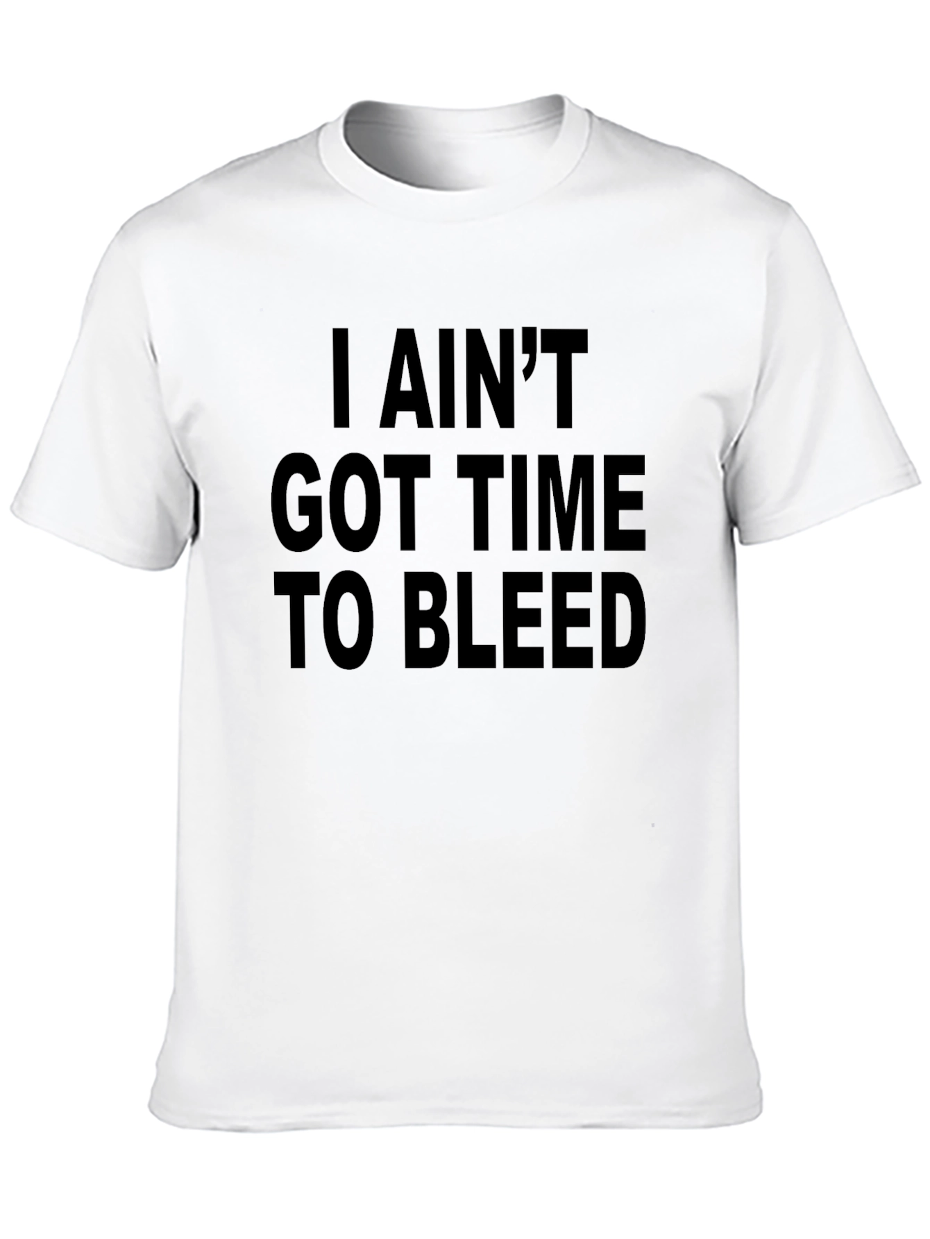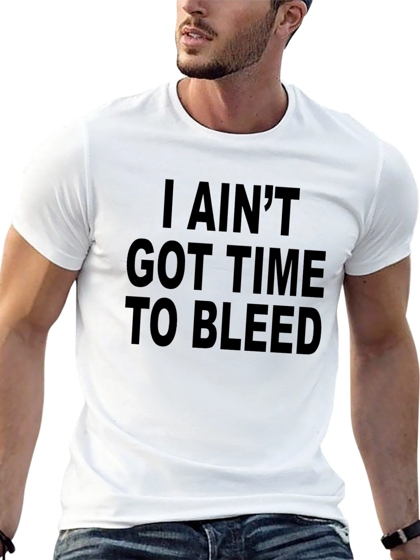 Esta camiseta negra de corte clásico presenta una declaración audaz: "I AIN'T GOT TIME TO BLEED" estampada en letras grandes y llamativas. Fabricada con tela suave al tacto, esta camiseta de manga corta ofrece comodidad y estilo. Perfecta para aquellos con una actitud irreverente y un sentido del humor único. Ideal para llevar en eventos casuales, salidas con amigos o simplemente para expresar tu personalidad. Con su diseño simple pero impactante, esta camiseta es una adición imprescindible para cualquier guardarropa moderno. ¡Haz una declaración y muestra tu espíritu indomable con esta camiseta!