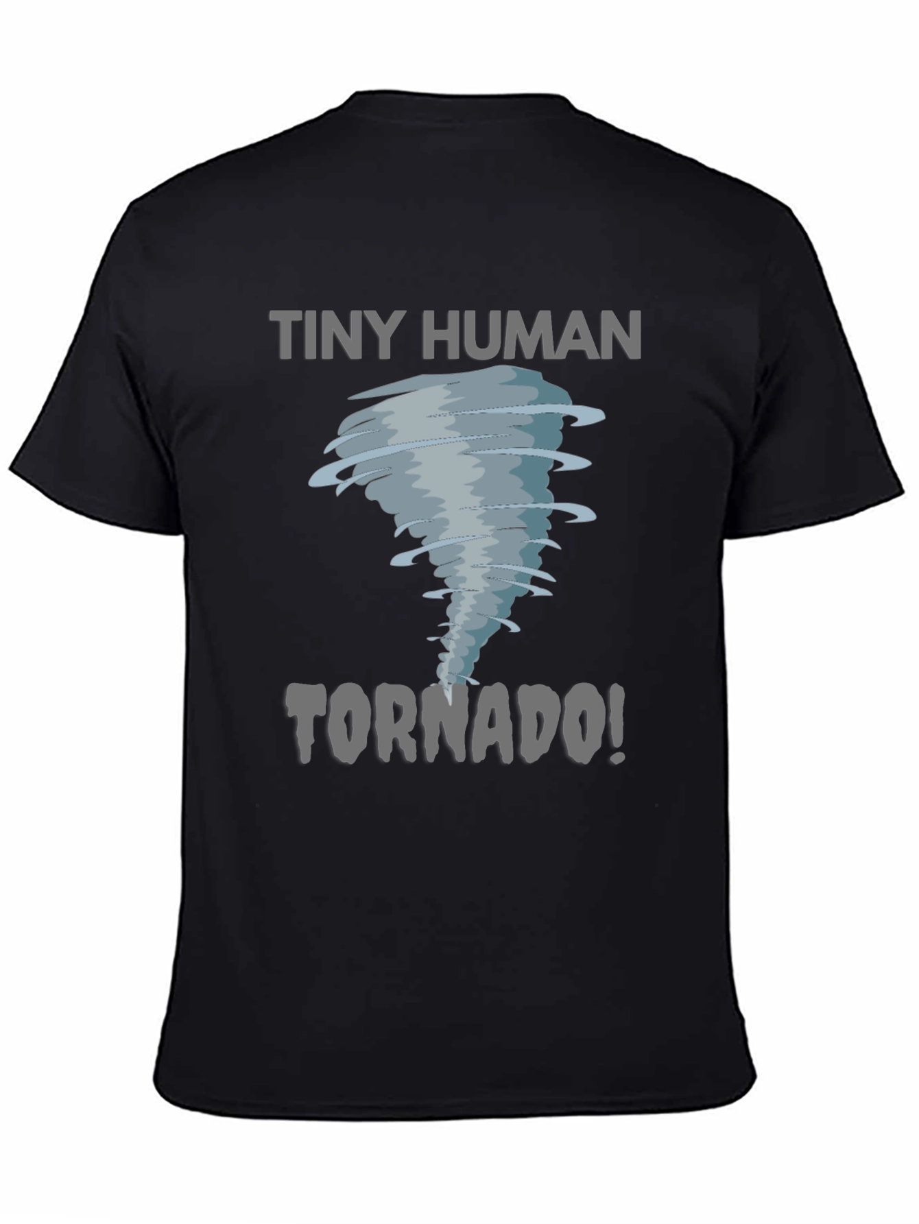 Muestra tu lado divertido con esta llamativa camiseta negra. El diseño presenta un gráfico de un tornado estilizado en tonos grises y blancos, acompañado del texto "TINY HUMAN" en la parte superior y "TORNADO!" en la inferior. Ideal para los amantes de la naturaleza, el clima, o simplemente para quienes buscan una prenda original y cómoda. Perfecta para un look casual, esta camiseta seguro generará conversación y destacará tu estilo único. Confeccionada con materiales de alta calidad para mayor confort y durabilidad.