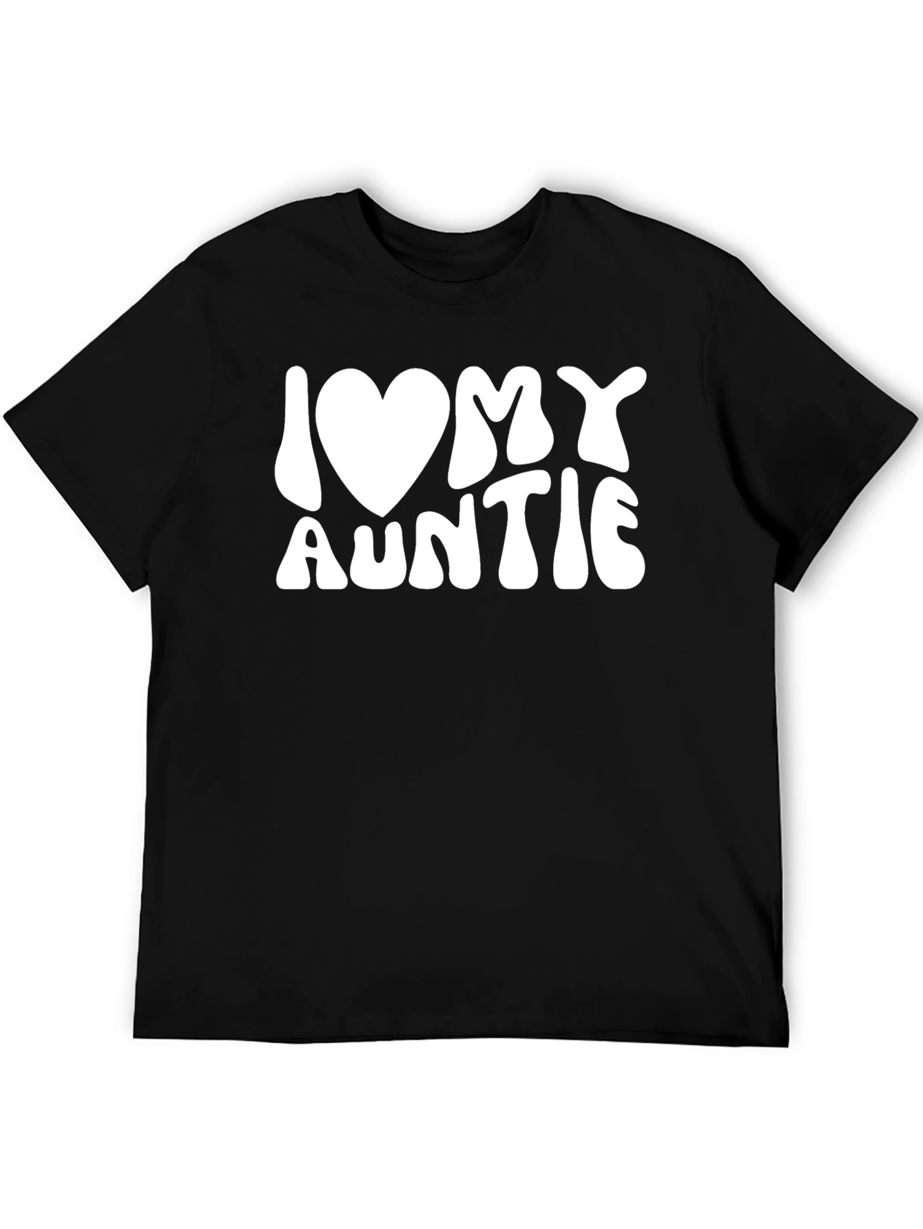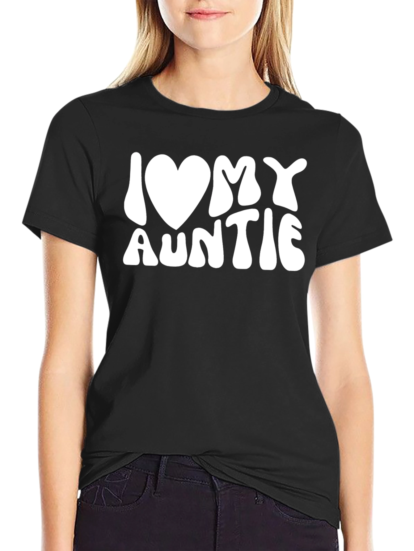 Demuestra tu amor con esta camiseta negra de diseño llamativo. Presenta un estampado frontal con el texto "I ❤️ MY AUNTIE" en letras blancas y diseño divertido. Fabricada con materiales suaves y cómodos, esta camiseta de manga corta es perfecta para uso diario. Ideal para mostrar tu cariño a tu tía en cumpleaños, el Día de la Madre o simplemente como un gesto especial. Su diseño versátil la hace adecuada para combinar con vaqueros, pantalones cortos o faldas. Un regalo original y sentimental para fortalecer los lazos familiares y expresar tu afecto.