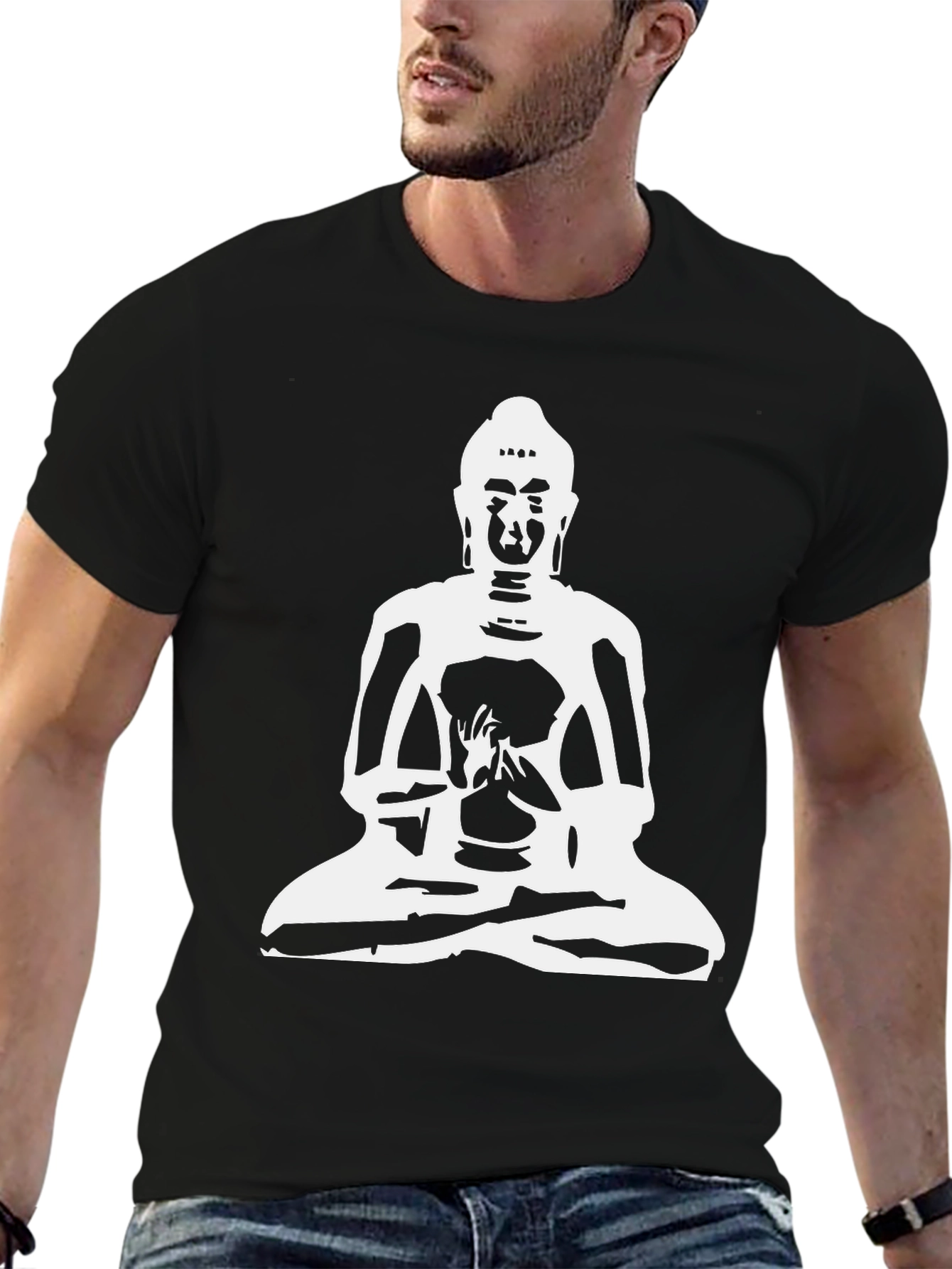 Descubre esta camiseta negra de manga corta para hombre, confeccionada en suave algodón. Presenta un llamativo diseño en color blanco de Buda meditando, ideal para expresar tu estilo único y relajado. Perfecta para un look casual, para practicar yoga o meditación, o simplemente para añadir un toque espiritual a tu vestuario diario. Su diseño versátil combina fácilmente con jeans, pantalones cortos o joggers. Una prenda cómoda y con estilo que no puede faltar en tu armario. Luce tu lado zen con esta original camiseta.