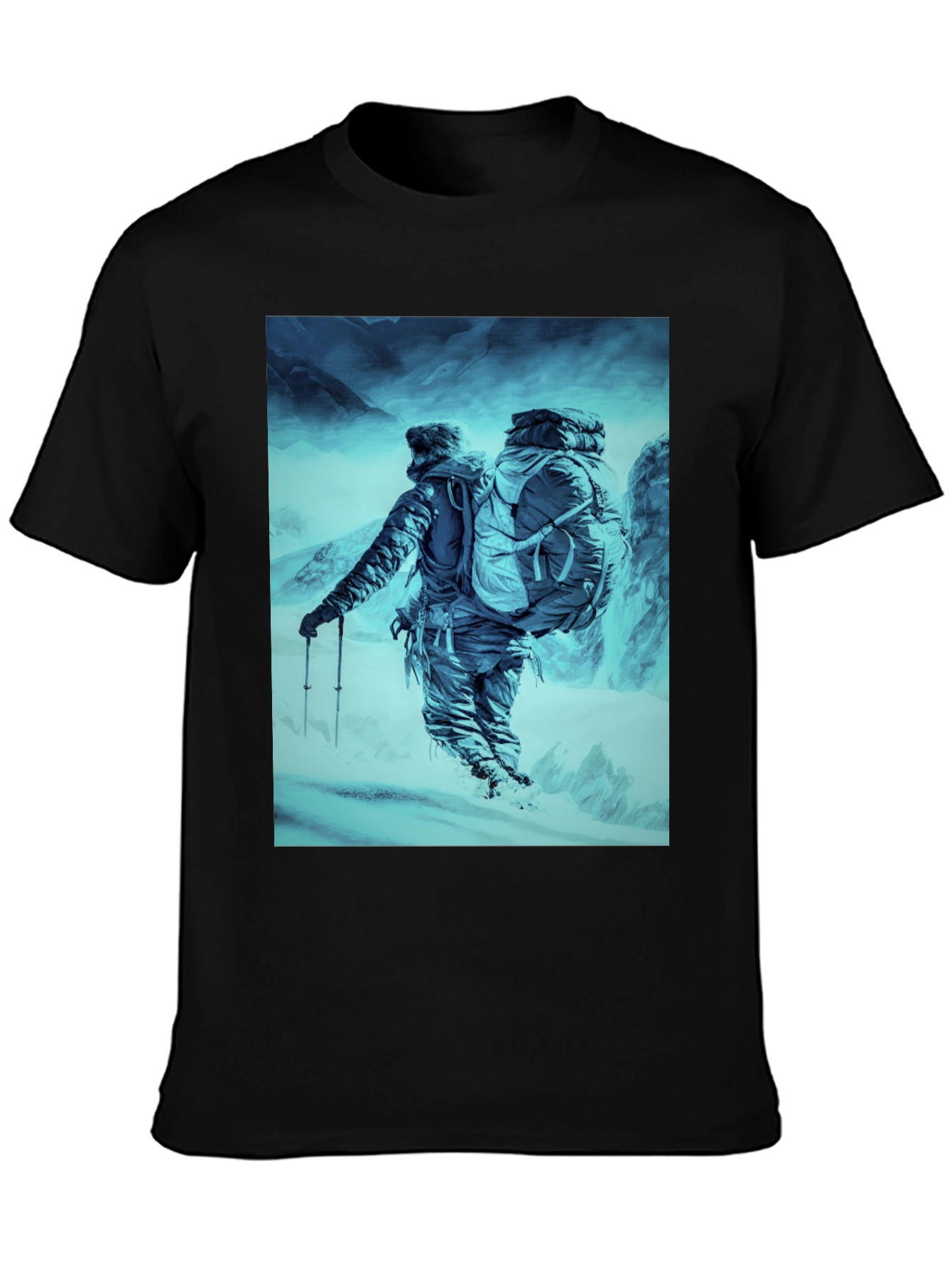 Luce esta impresionante camiseta negra con un diseño artístico de un aventurero conquistando las alturas. La imagen vibrante y detallada muestra a un montañista con equipo completo en un paisaje nevado, ideal para los amantes de la naturaleza y los deportes extremos. Fabricada con materiales cómodos y duraderos, esta camiseta es perfecta para uso diario o para expresar tu pasión por la aventura. Su diseño único la convierte en una prenda llamativa y original, perfecta para destacar entre la multitud. Combínala con tus jeans favoritos para un look casual o con ropa deportiva para tus actividades al aire libre. ¡Atrévete a llevar la emoción de la montaña contigo!