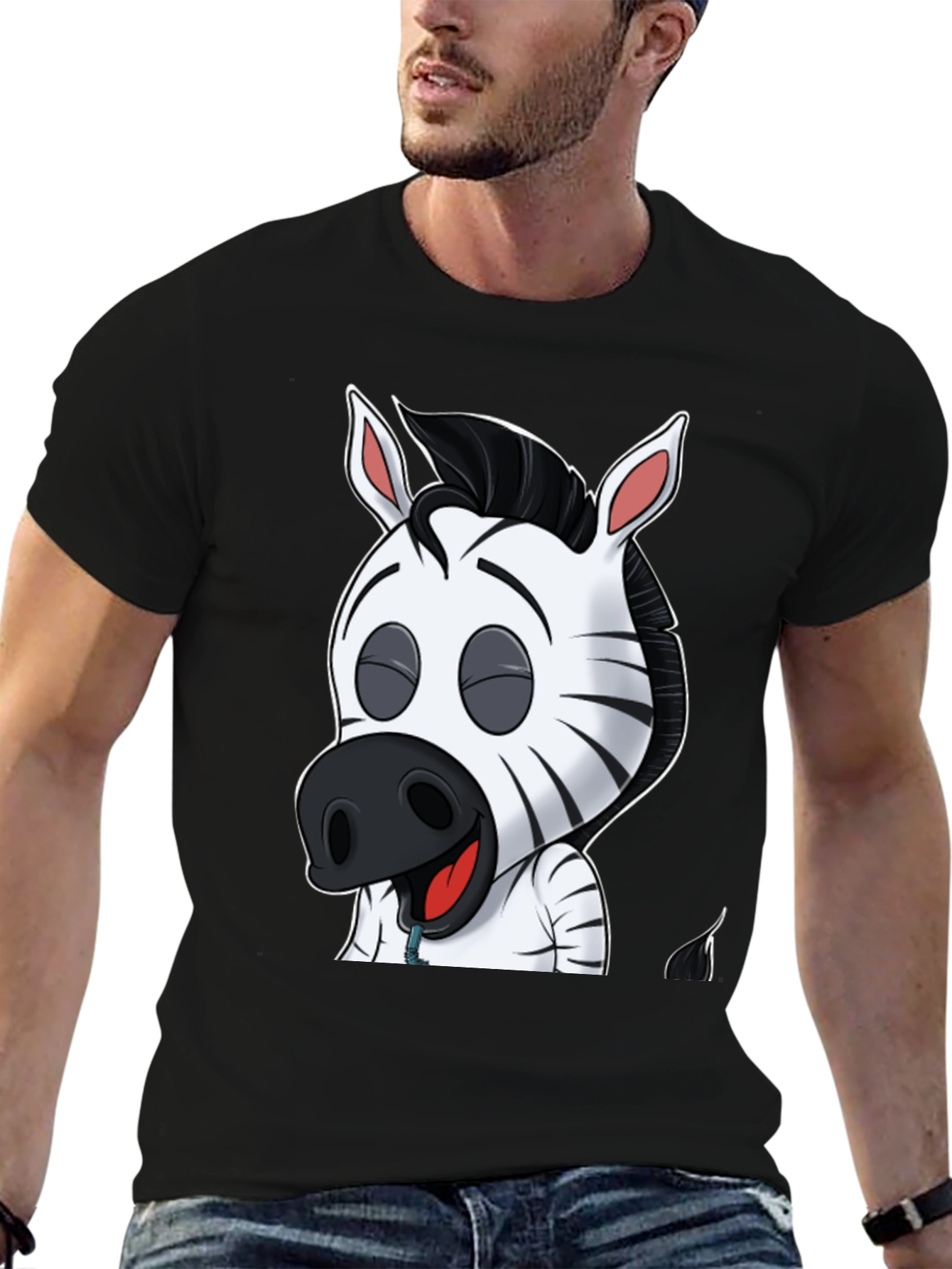 Camiseta Negra con Diseño de Cebra Animada para Hombre