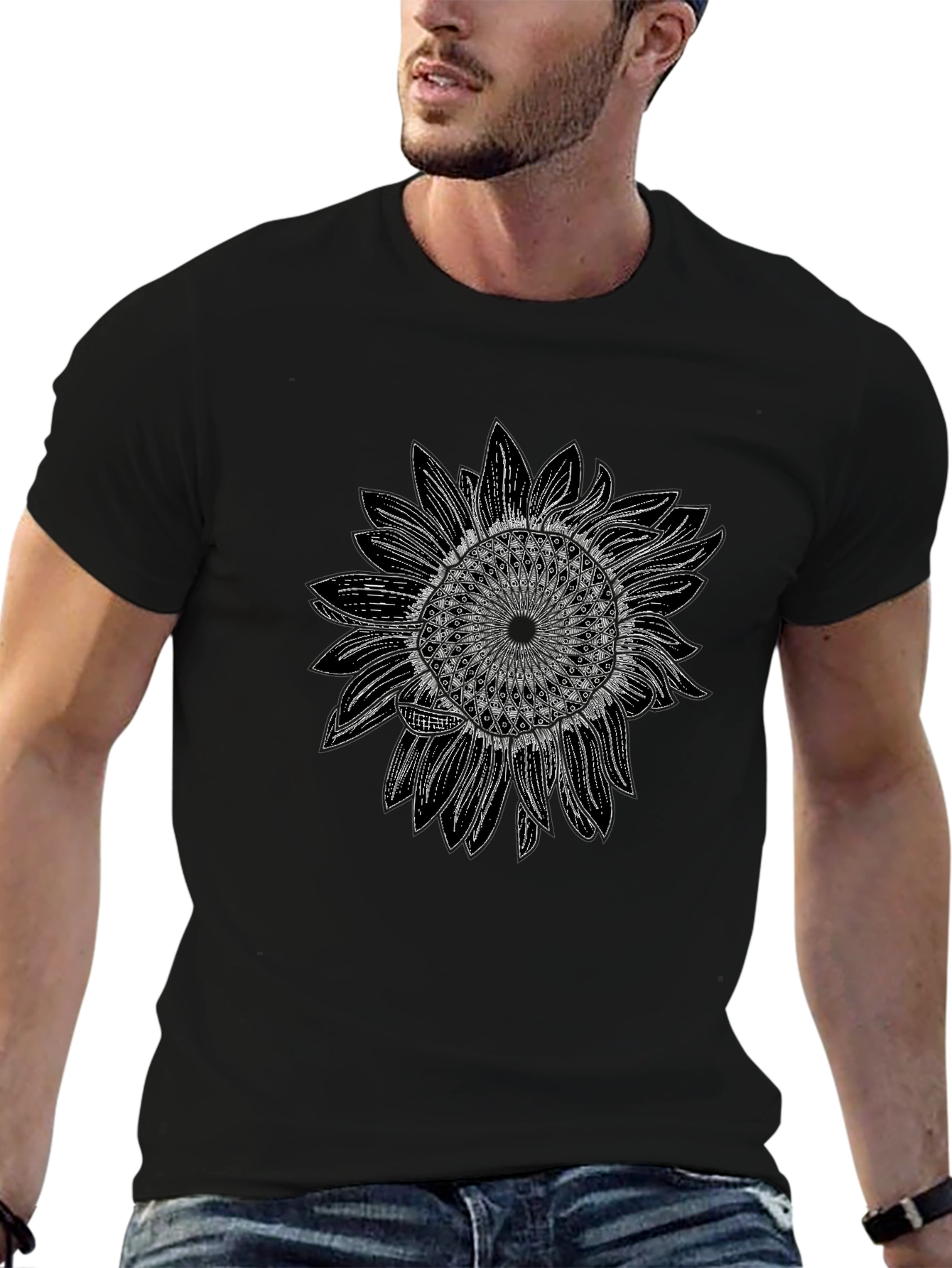 Luce esta elegante camiseta negra con un diseño de girasol mandala intrincadamente detallado. Perfecta para quienes buscan un estilo único y moderno, esta camiseta combina comodidad y originalidad. El diseño mandala añade un toque artístico y espiritual, haciéndola ideal tanto para el uso diario como para ocasiones especiales donde quieras destacar. Fabricada con materiales suaves y duraderos, asegura confort y resistencia. Combínala con tus jeans favoritos para un look casual o con pantalones más formales para un estilo más sofisticado. Expresa tu individualidad con esta prenda versátil y llamativa.