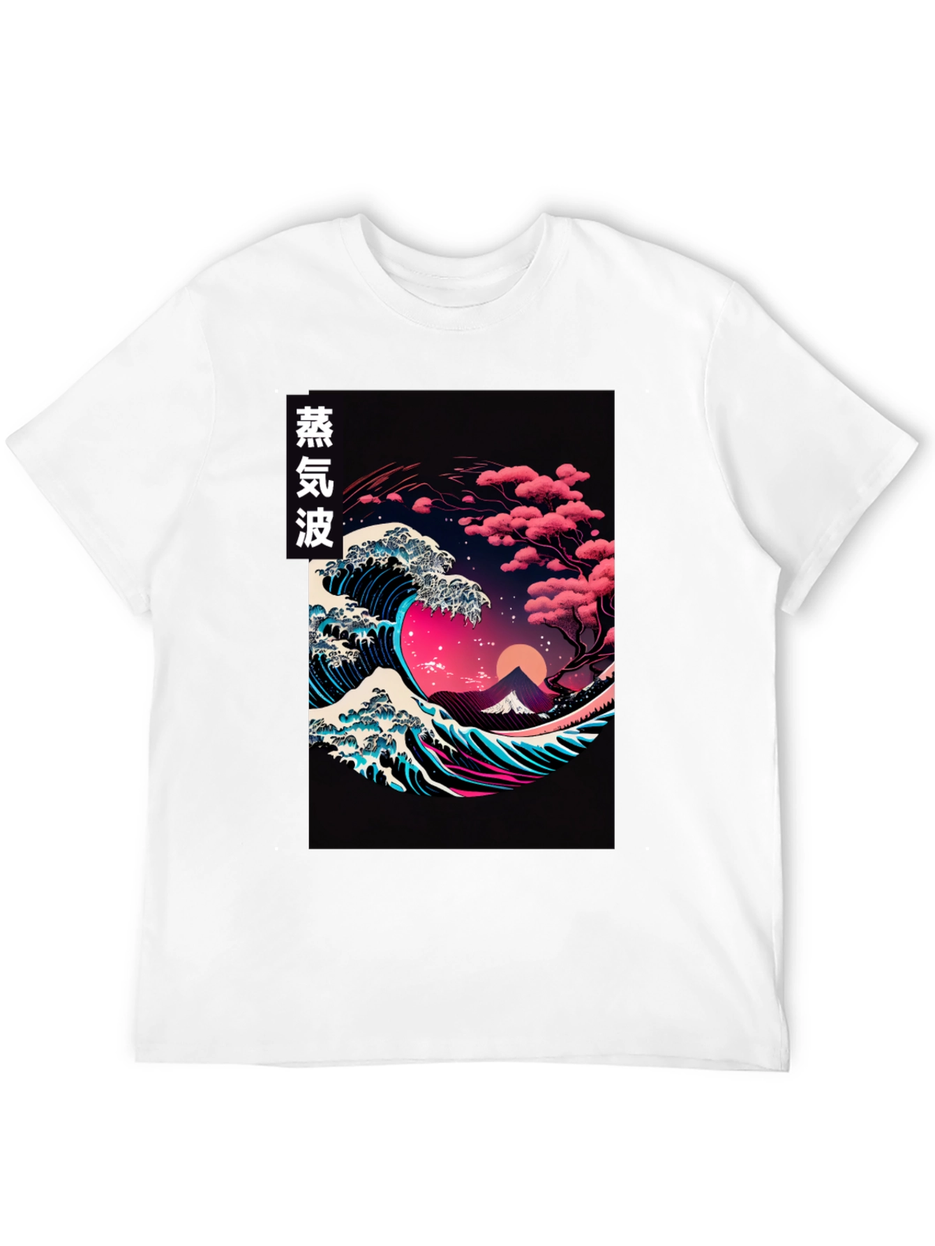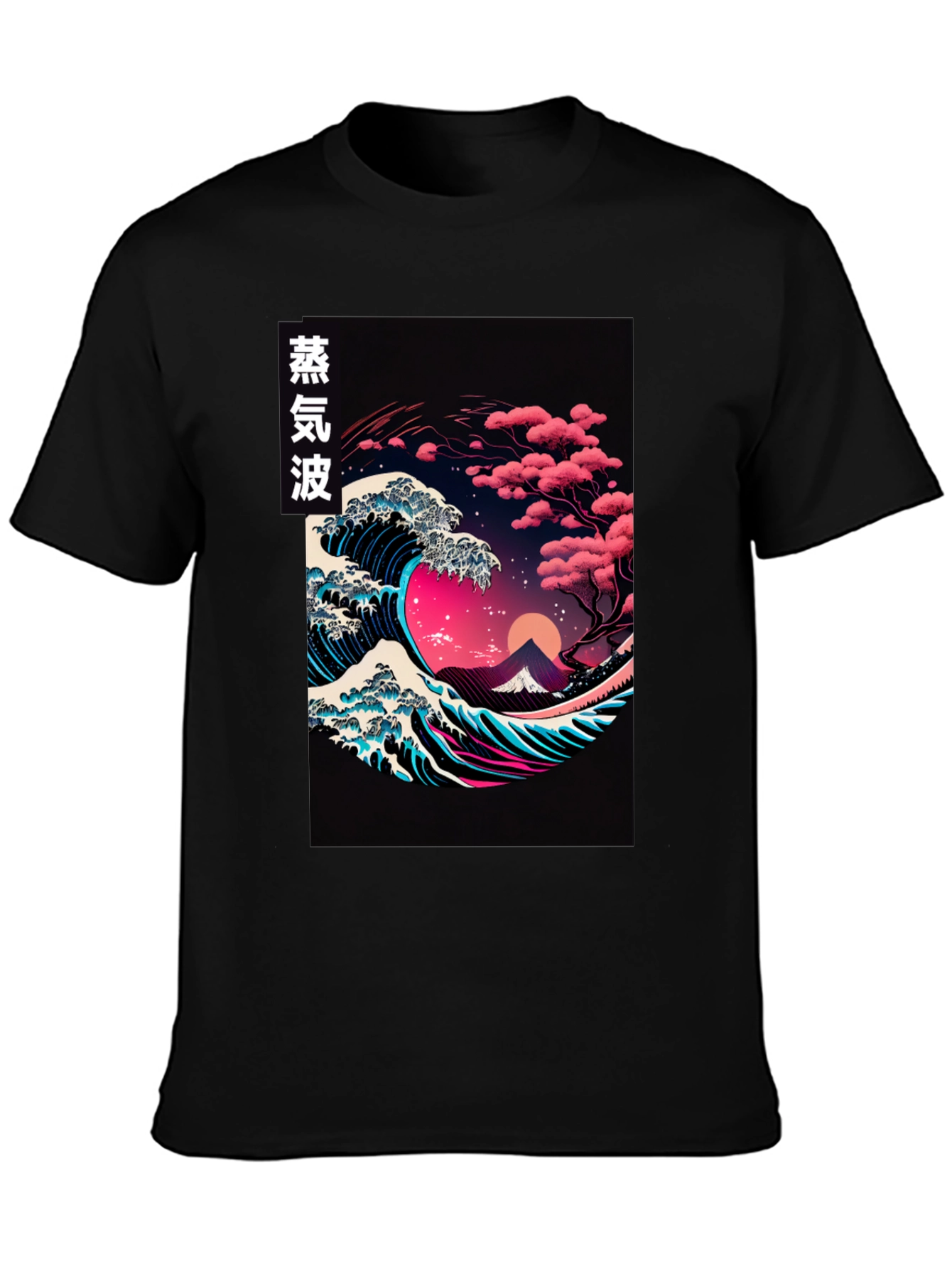 Camiseta Negra con Diseño de Ola Vaporwave Japonés