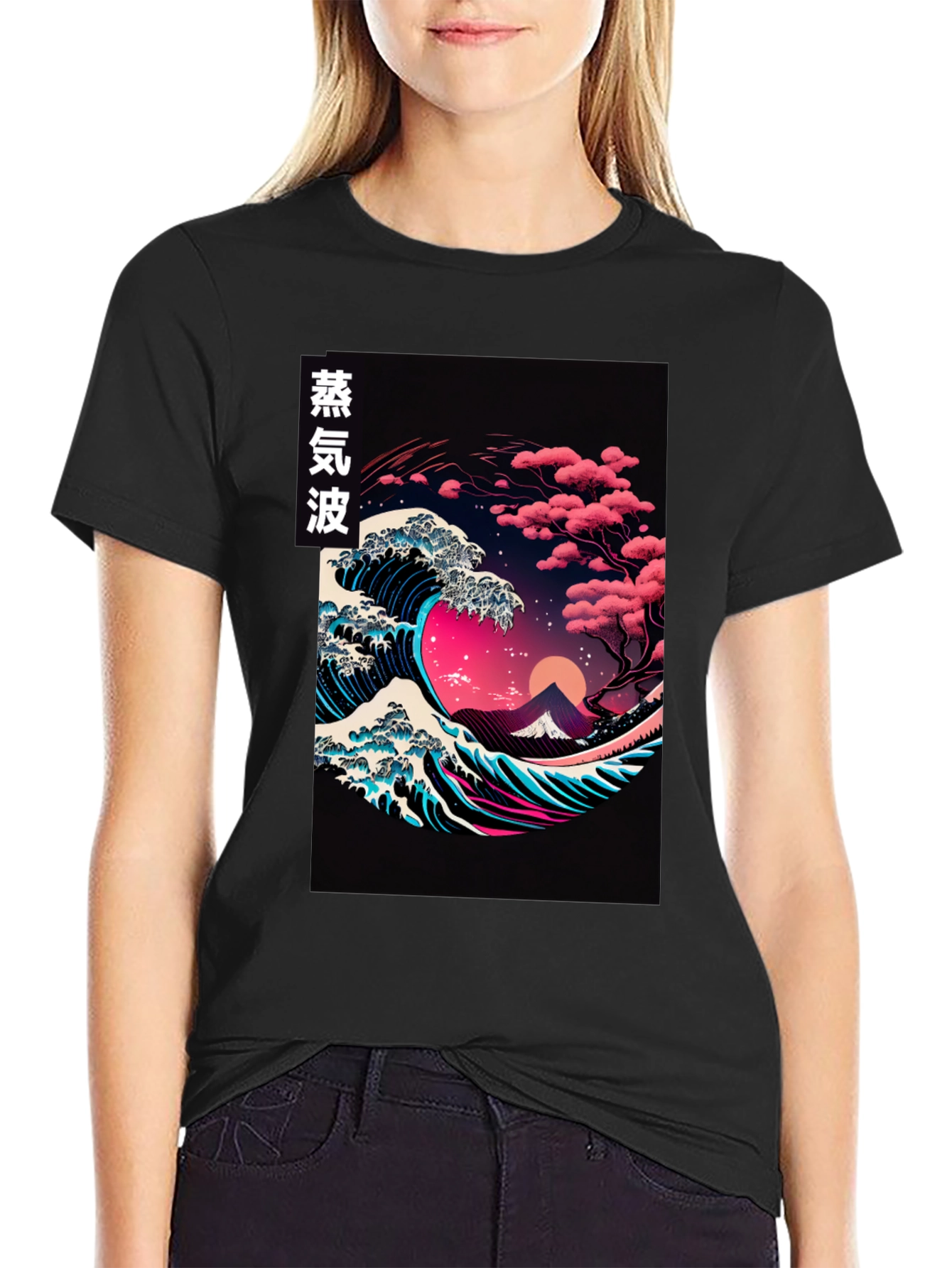 Eleva tu estilo con esta llamativa camiseta negra de corte clásico. El vibrante diseño presenta una interpretación moderna de la tradicional ola japonesa, con toques de color neón al estilo vaporwave. Ideal para destacar entre la multitud, esta camiseta ofrece comodidad y estilo en una sola prenda. Perfecta para llevar en festivales, conciertos o simplemente para expresar tu individualidad. El tejido suave al tacto asegura un confort duradero, mientras que el diseño audaz te convierte en el centro de atención. Atrévete a lucir diferente y muestra tu pasión por la cultura japonesa y el arte vanguardista.