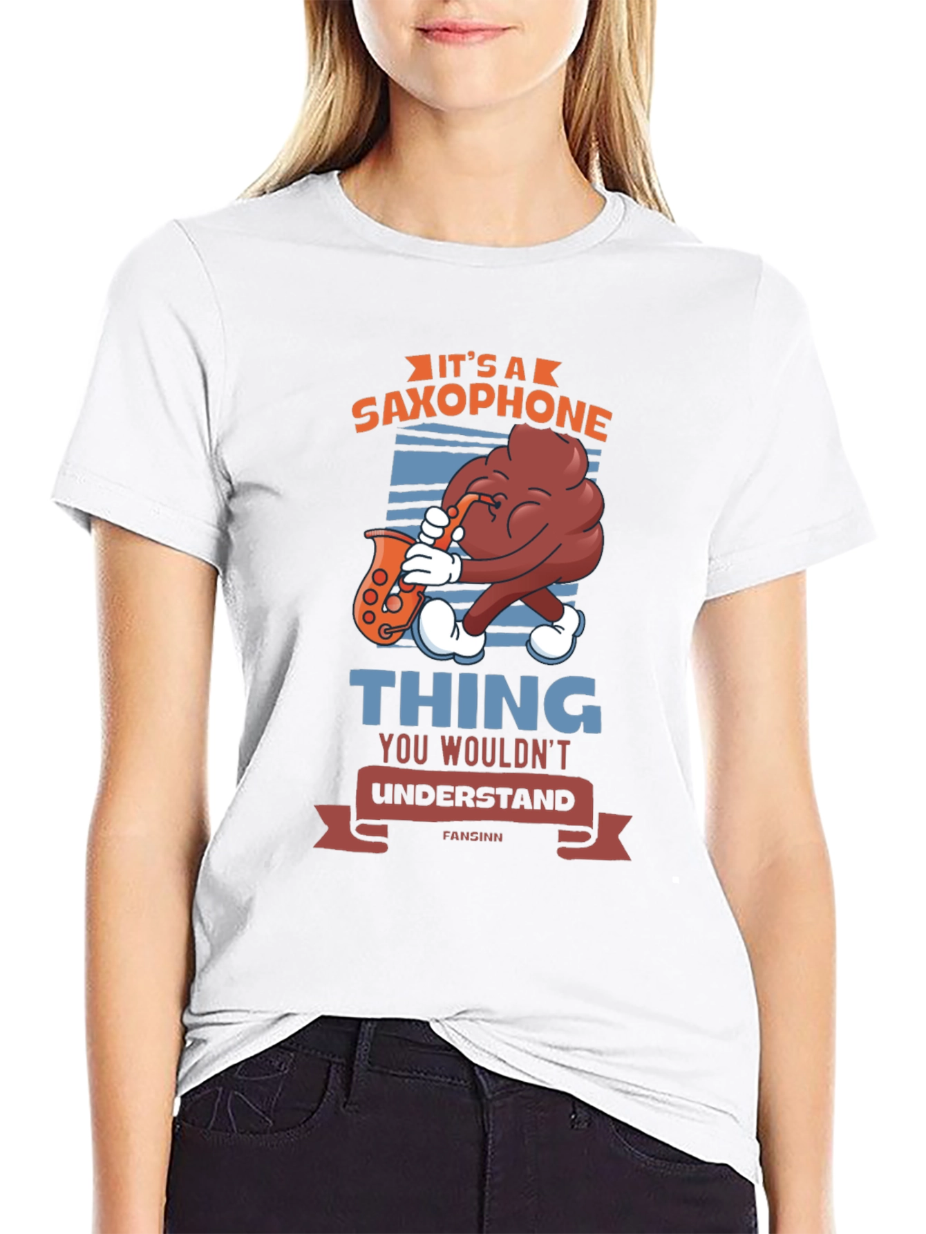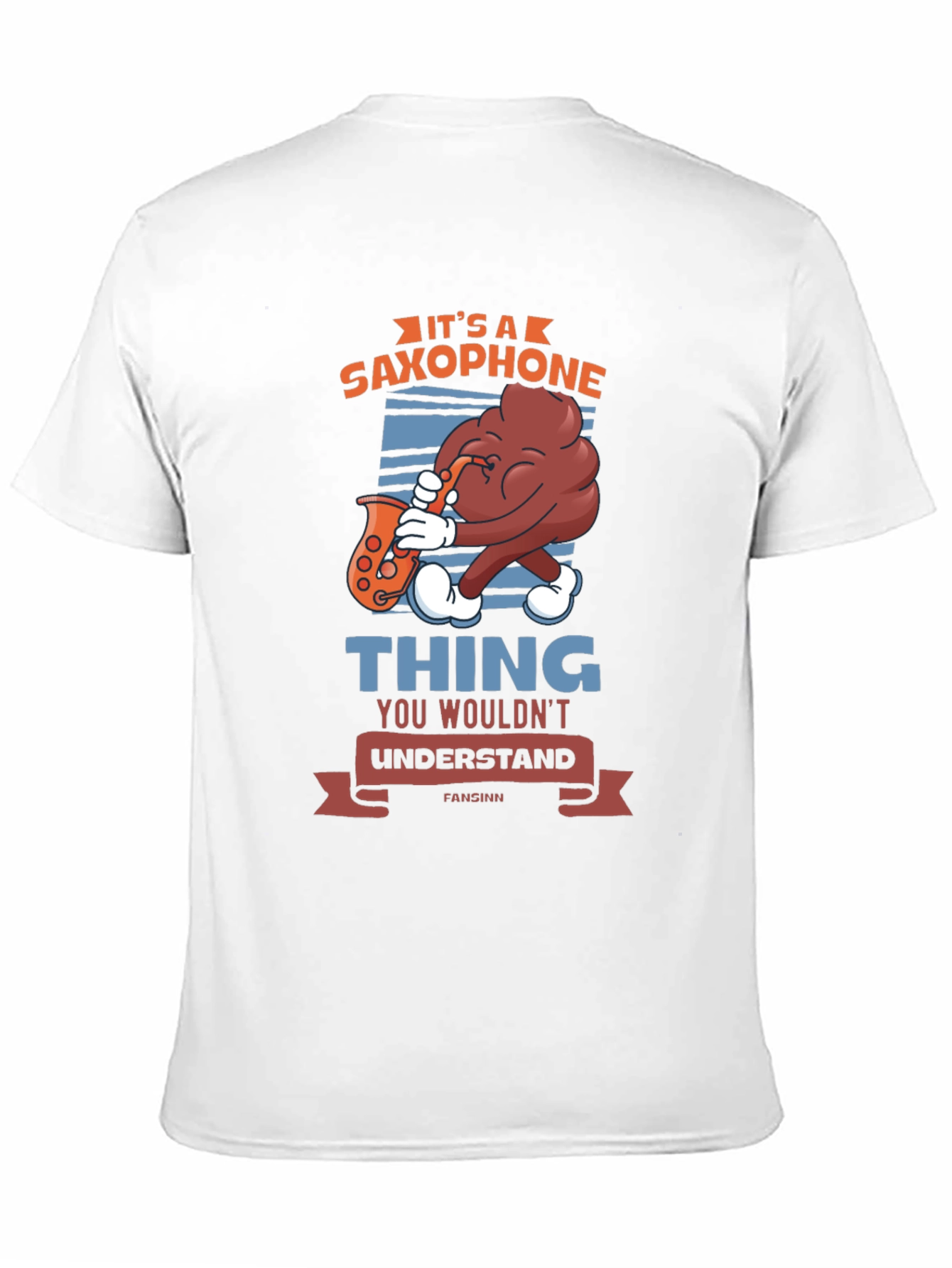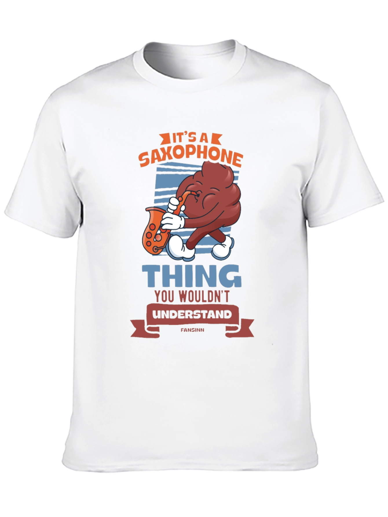 Luce con estilo esta camiseta negra de manga corta con un diseño único y divertido. El estampado presenta una caricatura de un excremento tocando el saxofón, acompañado del texto "It's a Saxophone Thing You Wouldn't Understand". Ideal para los amantes de la música, especialmente del saxofón, y aquellos con un sentido del humor original. Perfecta para uso casual, conciertos o para expresar tu personalidad de una manera llamativa. Esta camiseta es cómoda y será un gran tema de conversación dondequiera que vayas. ¡Añade un toque de originalidad a tu guardarropa con esta prenda única!