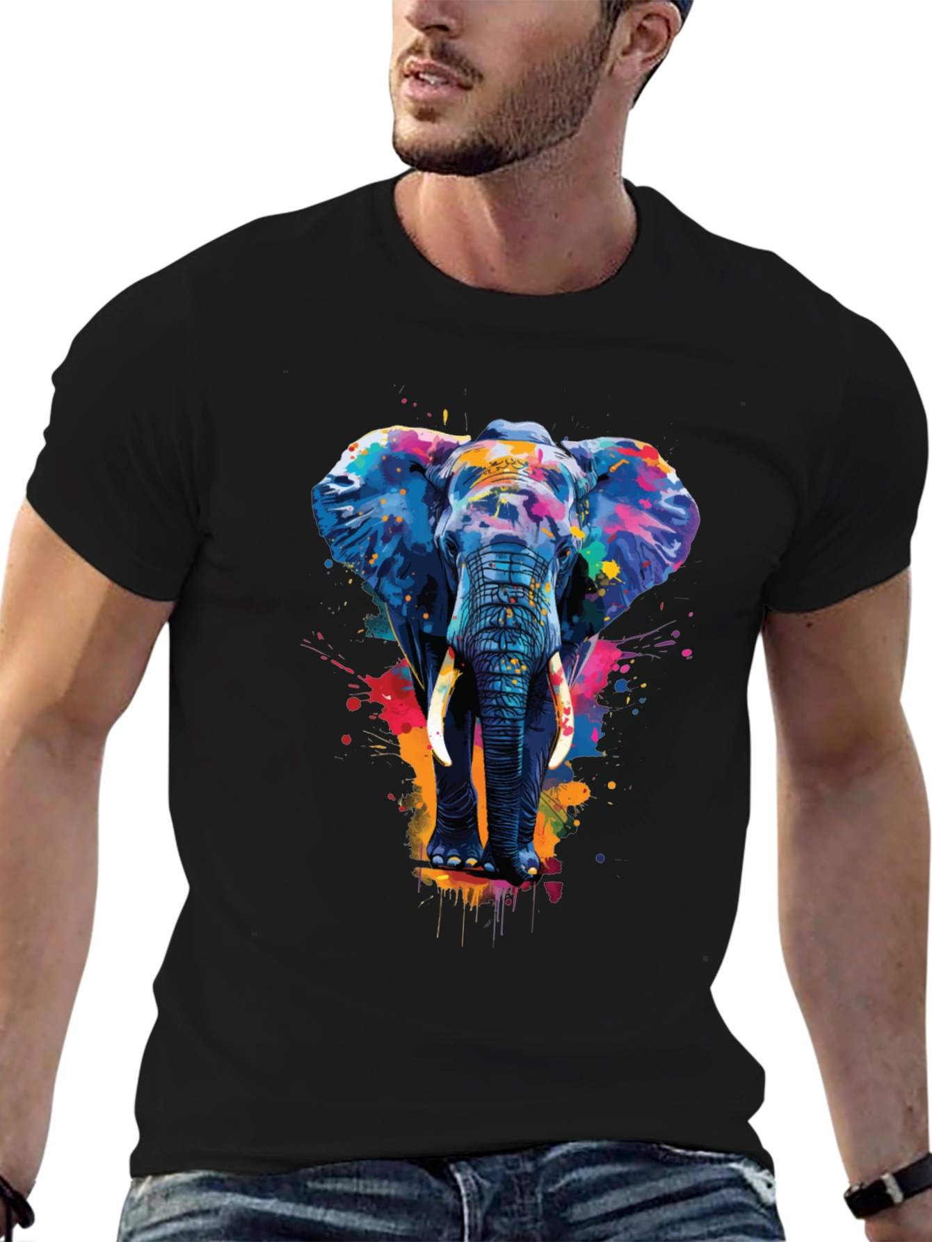 Destaca con esta llamativa camiseta negra, ideal para los amantes de la naturaleza y el arte. Presenta un diseño vibrante de un elefante en estilo acuarela, con una explosión de colores que la hace única. Fabricada en un tejido suave y cómodo, perfecta para el uso diario. Su corte clásico se adapta a cualquier estilo, ya sea casual o más elaborado. Combínala con tus jeans favoritos para un look relajado o con pantalones chinos para una ocasión especial. Expresa tu individualidad con esta prenda que no pasará desapercibida. ¡Atrévete a lucir diferente!