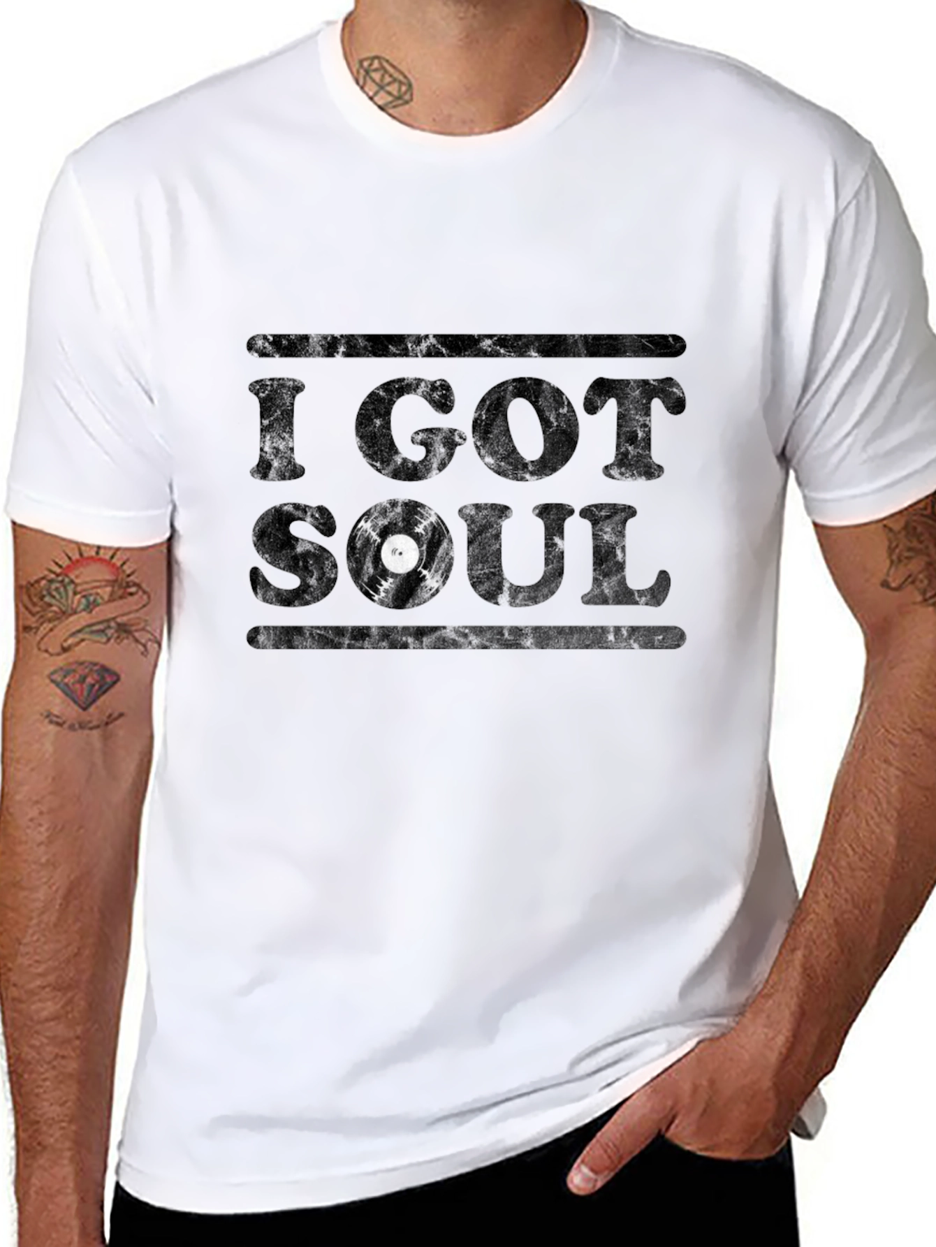 Esta camiseta negra presenta un diseño llamativo que celebra la música soul. Con la frase 'I Got Soul' destacada y un gráfico de vinilo clásico incorporado en la palabra 'Soul', esta prenda es perfecta para los amantes de la música. Fabricada con un material suave al tacto, esta camiseta ofrece comodidad y estilo. Ideal para uso diario, conciertos, o simplemente para expresar tu pasión por la música soul. Su diseño sencillo y moderno la convierte en una prenda versátil para combinar con jeans, pantalones cortos o faldas. ¡Muestra tu amor por el soul con esta camiseta única!