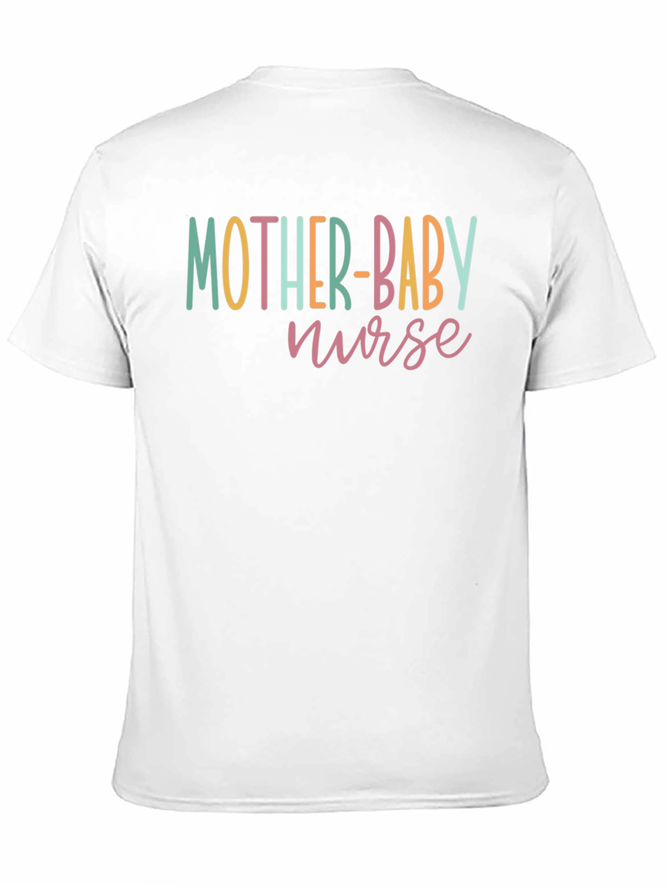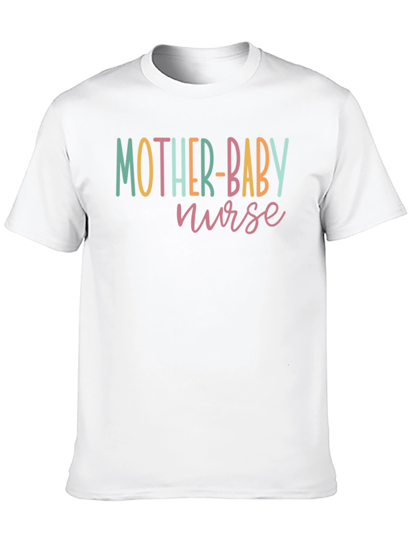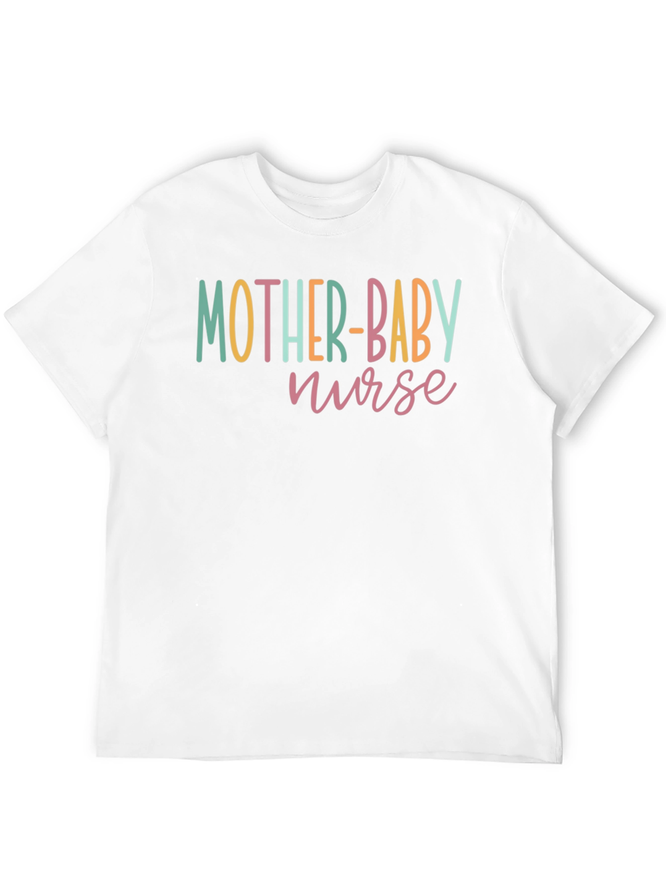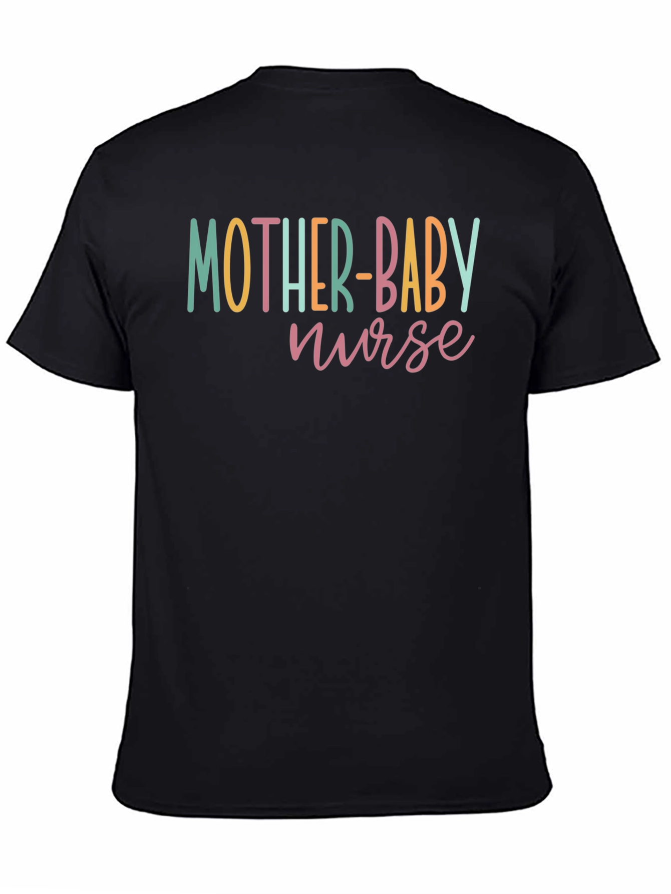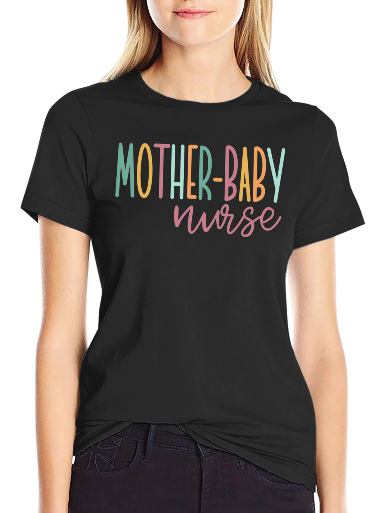 Esta camiseta negra de manga corta presenta un diseño divertido y colorido con la frase 'MOTHER-BABY nurse'. Ideal para enfermeras de maternidad, esta prenda combina comodidad y estilo. El diseño incluye letras en varios colores pastel, creando un aspecto alegre y moderno. Perfecta para usar en el trabajo, en eventos informales o como un regalo considerado para una enfermera dedicada. Su corte clásico y tejido suave garantizan un ajuste cómodo durante todo el día. Muestra tu pasión por tu profesión con esta camiseta única y llamativa.