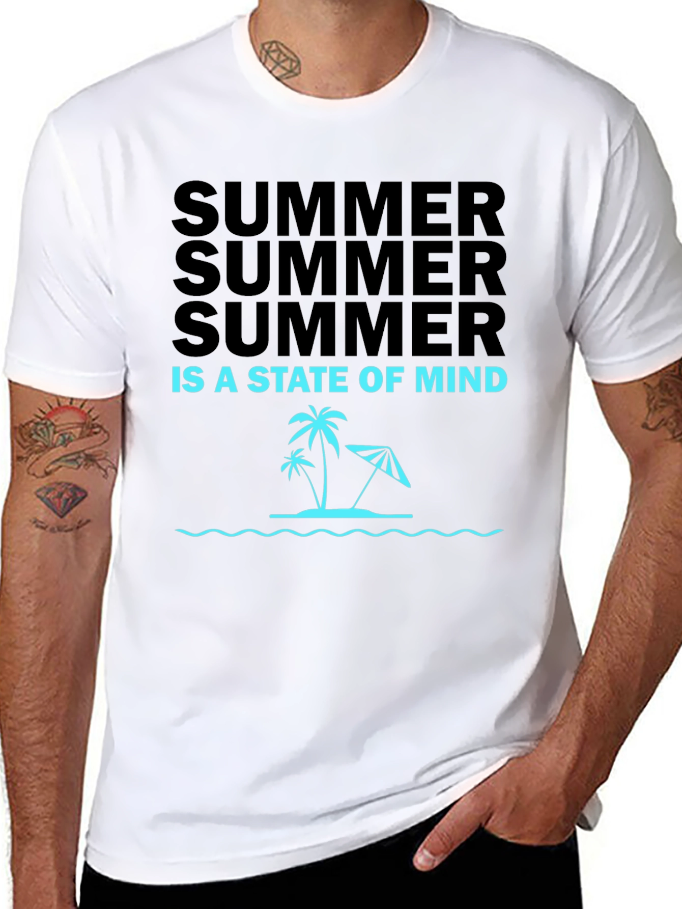 Luce esta camiseta negra con un diseño vibrante que evoca el espíritu del verano. La frase "Summer is a state of mind" (El verano es un estado mental) resalta junto a una imagen de palmeras y una sombrilla en una isla tropical, todo en un llamativo color azul turquesa. Fabricada en un tejido suave y cómodo, ideal para el uso diario o para esas tardes relajadas en la playa. Perfecta para quienes llevan el verano en el corazón, esta camiseta es una declaración de estilo y actitud. ¡Combínala con tus jeans o shorts favoritos y prepárate para disfrutar del sol!
