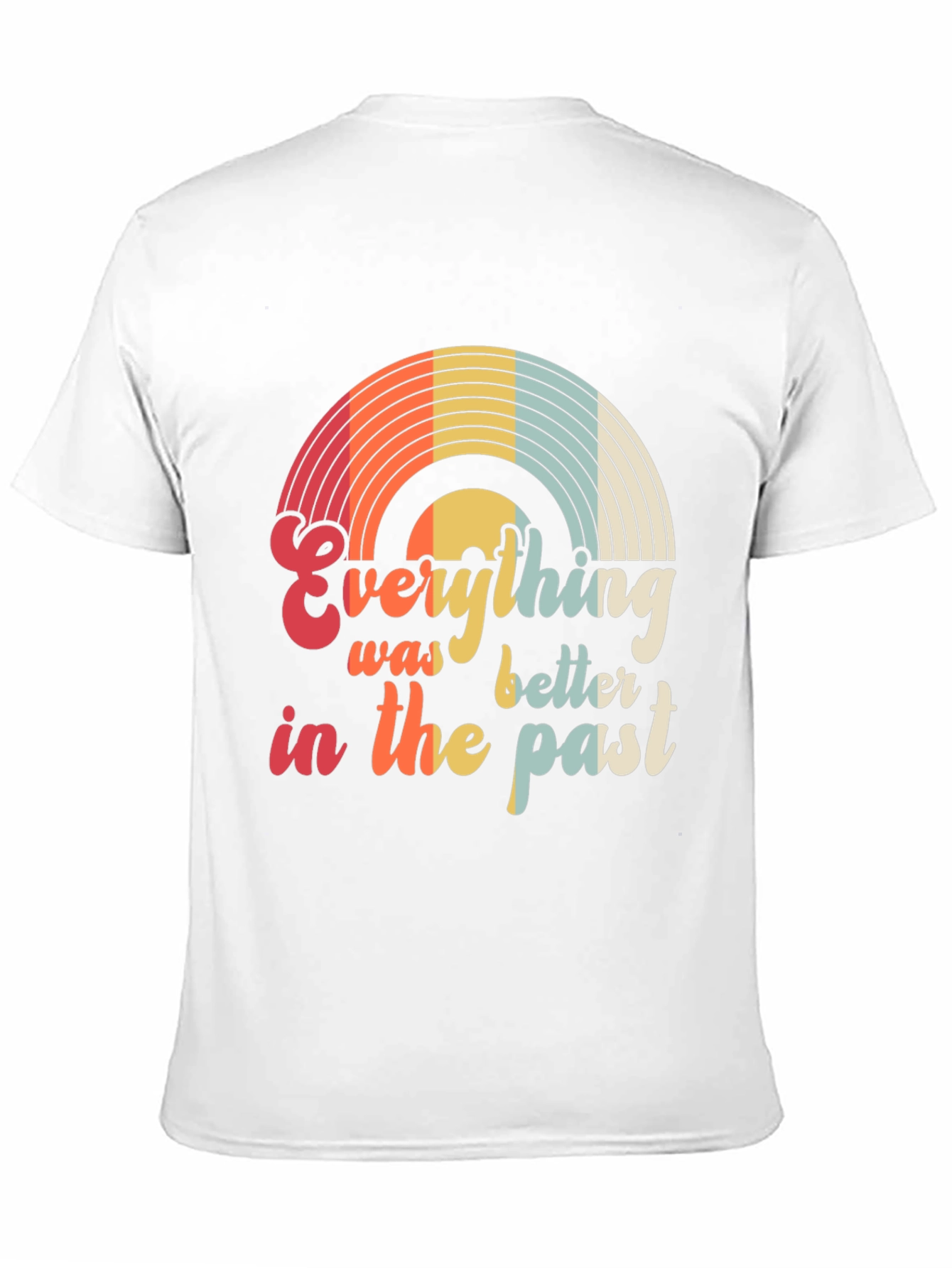 Revive la nostalgia con esta camiseta de diseño retro. Confeccionada en una tela suave y cómoda, esta camiseta negra presenta un llamativo diseño circular de estilo vintage con colores vibrantes que evocan épocas pasadas. El mensaje "Everything was better in the past" (Todo era mejor antes) añade un toque divertido y nostálgico. Perfecta para los amantes de lo retro, esta camiseta es ideal para usar a diario, asistir a eventos temáticos o simplemente expresar tu estilo único. ¡Un imprescindible en tu guardarropa para un look relajado y con onda!